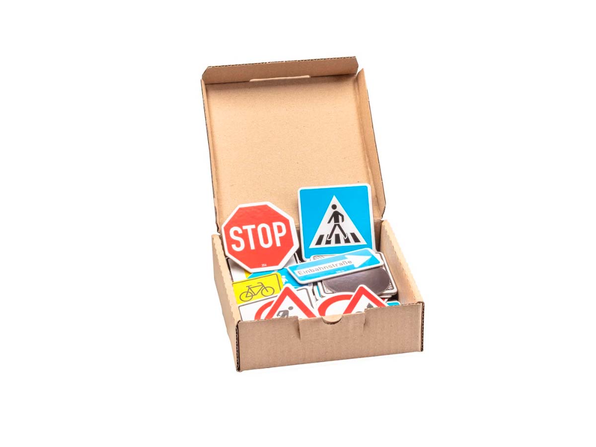 Inhalt: 64 magnethaftende Verkehrszeichen, ø 6-8 cm aus MAG-Pap.