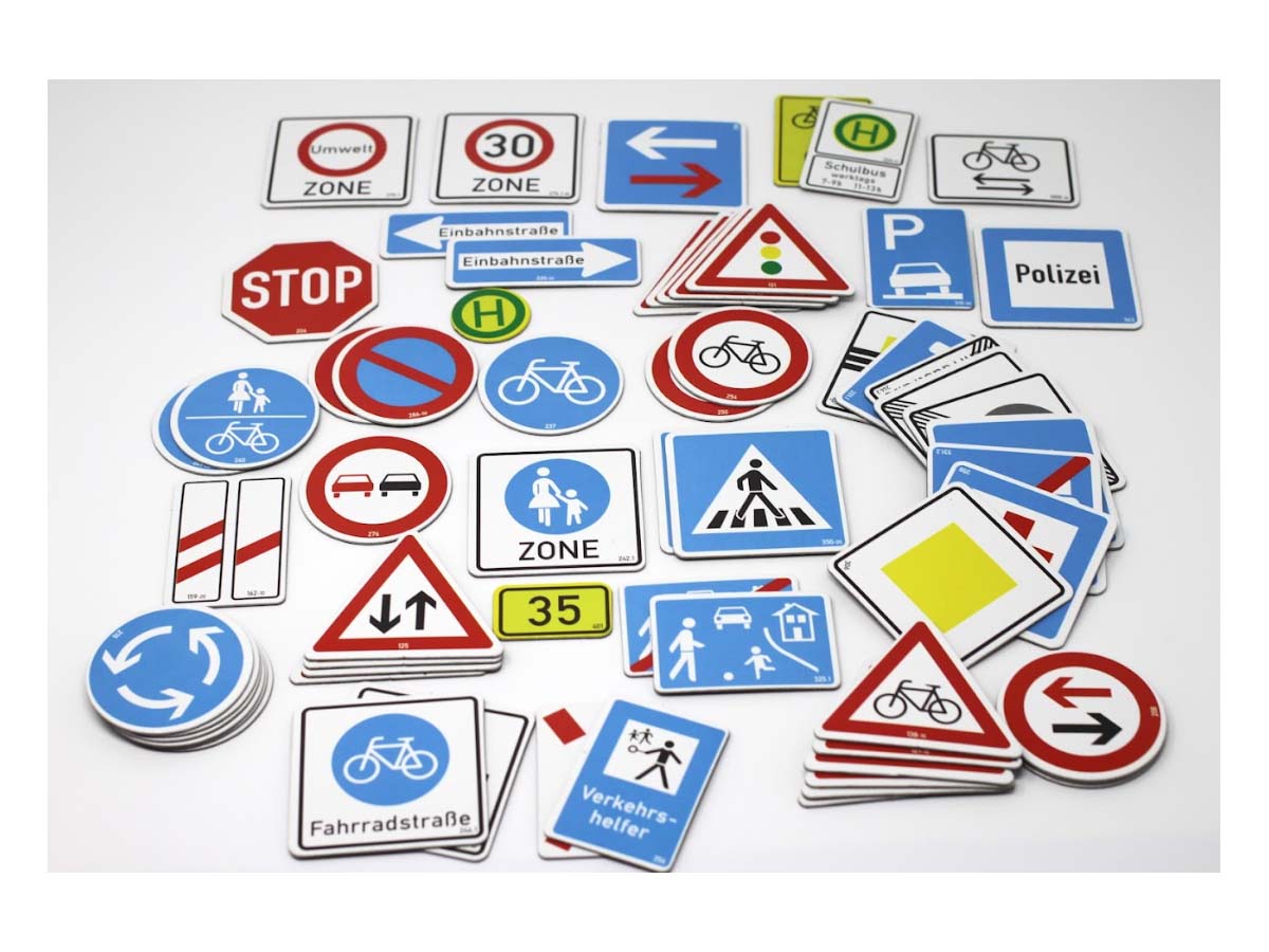 Versehen mit der entspechenden Nummer der StVO, inkl Anleitung mit der Bedeutung der einzelnen Verkehrsschilder