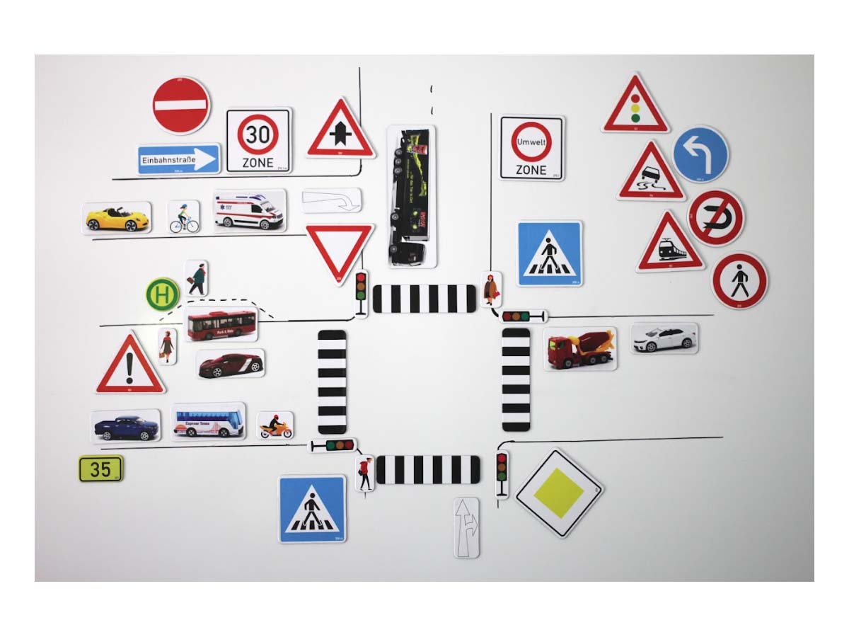 Erweiterter Verkehrszeichensatz, 124 magnethaftende Teile aus MAG-Pap°