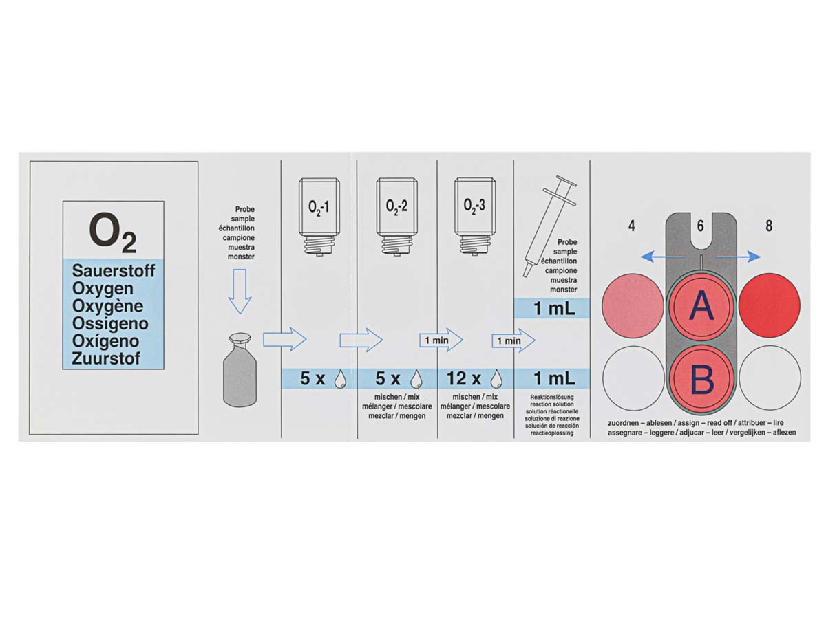 Kolorimetrisches Testbesteck zur Bestimmung von Sauerstoff in Wasserproben. VISOCOLOR ECO Sauerstoff kombiniert einfache Durchführung mit hoher Messsicherheit durch Farb- und Trübungskompensation. Zur visuellen Bestimmung im Vergleich zu einer Farbkarte oder zur photometrischen Messung mit unseren Kompaktphotometern.