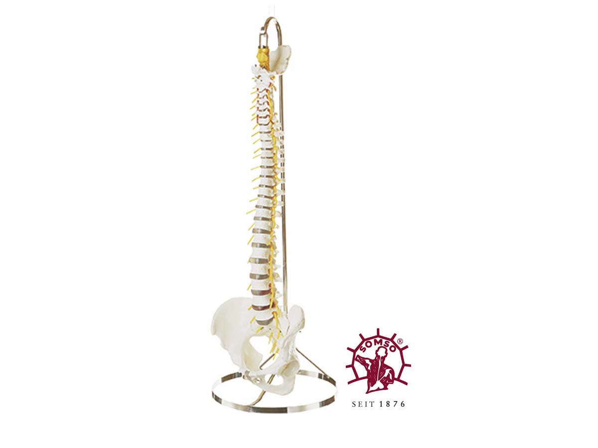 Beweglich montiert, mit Darstellung des Rückenmarks, den austretenden Spinalnerven und den dazugehörigen Ganglien.