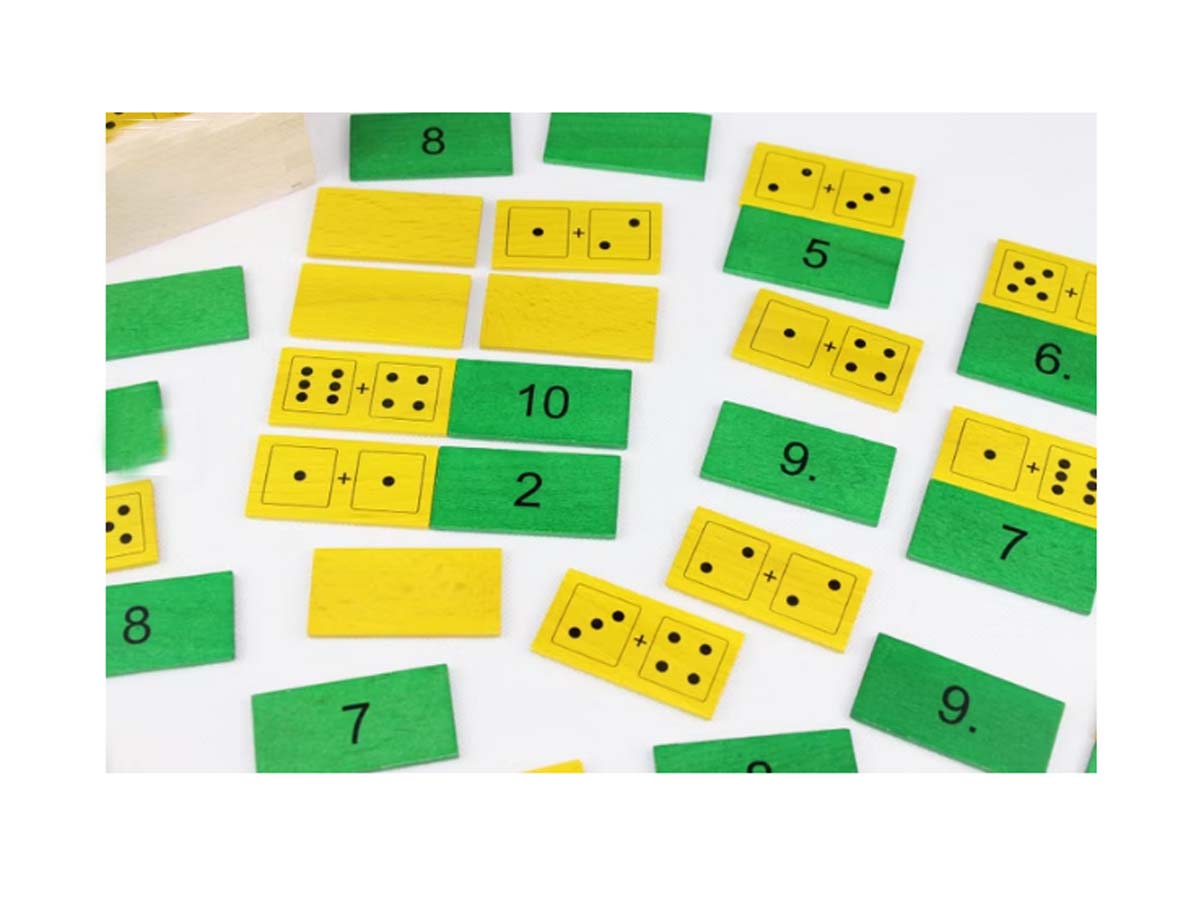 Das Spiel besteht aus 21 Steinpaaren. Auf den gelben Seiten sind immer zwei Würfelseiten (Augen) abgebildet. Diese müssen addiert werden und zu einem grünen Stein mit dem entsprechenden Wert zugeordnet werden.