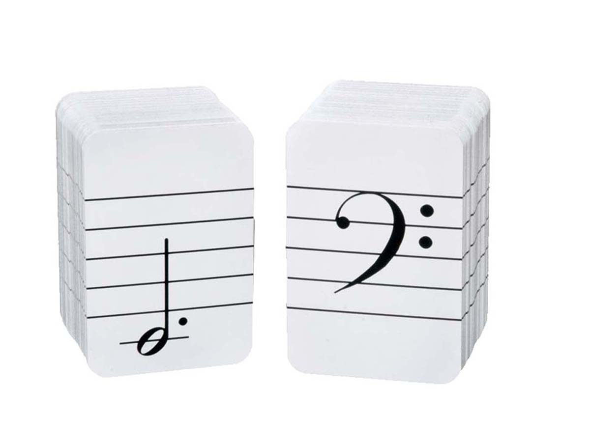 Mit punktierten Noten, Wiederholungs- und Schlusszeichen, Taktstrich- und Blankonotenkarten.